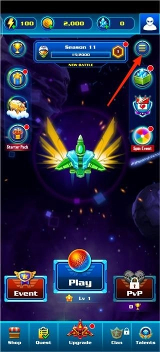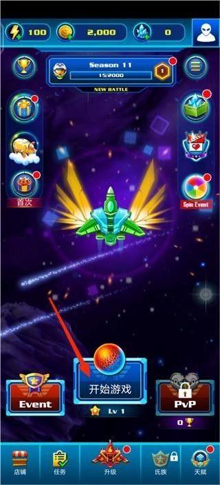 1、进入游戏中,通过关卡可以获得大量的金币奖励,可以用来购买强大的战机