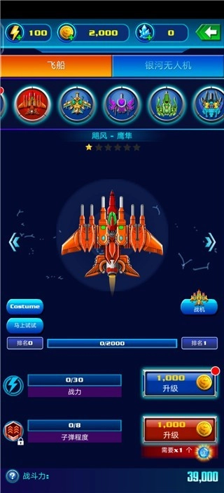 2、除了购买更为强大的战机外,还可以对战机进行升级,增加战机的战斗力