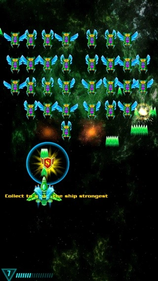 2、消灭来袭的敌人,多拾取掉落的能量块,可以获得特殊的能力加成
