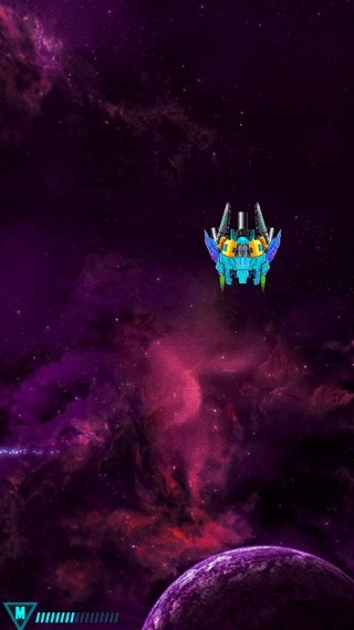 1、进入游戏之后,滑动屏幕控制飞船左右移动
