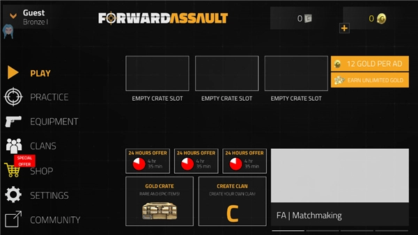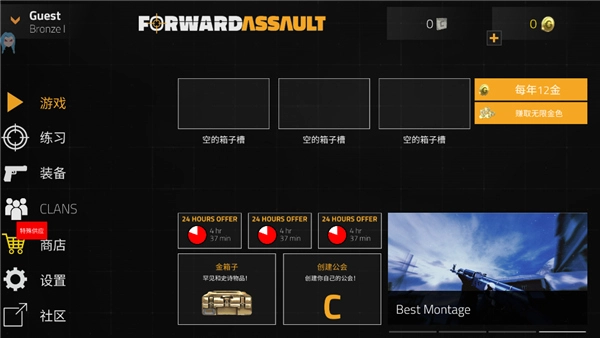 玩过或接触过cs或者是cf的玩家注意力,该游戏将对于你们来说是十分的简单,操作基本一致。同时,游戏中拥有实时联机模式,玩家可以建造房间与自己的好友共同进行游戏,也可以直接进行匹配。随着游戏的进行还拥有排位模式能够让玩家进行解锁。若玩家想要磨练自己的技术,可以进行人机模式,对本身的游戏没有任何的影响。最后,游戏中丰富的地图,让玩家可以体验不一样的欢乐与趣味。