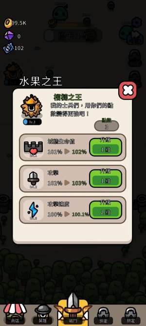 2.设计丰富多样的水果角色,每个角色拥有独特的近战或远程攻击特性。