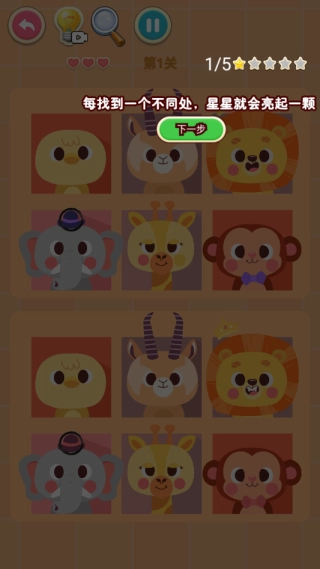 1. 用手指点击屏幕来找出两幅图片里的不同点,把所有差异都准确找出来就能通过关卡,还能得到星级评定。