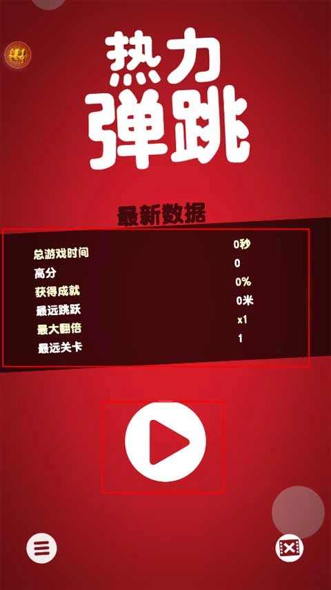 1、启动游戏后,你能看到上一局的最新数据,像高分、解锁的成就等信息都包含在内,点击界面下方的按钮即可开始游戏。