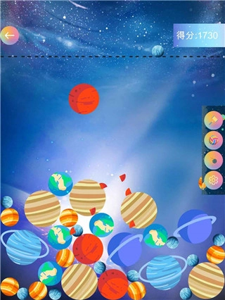 4、合并并不一定需要掉落才行,在下方两个相同的星球要是碰撞在一起也会进行消除。