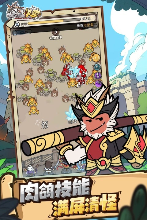 《猴哥快跑》是一款集结了roguelike、放置与割草玩法的策略塔防游戏。游戏内角色均采用Q萌设计,玩家可召集哪吒、吕布、一眉道长、小龙人等英雄并肩作战,共同抵御敌人的一波波进攻。此外,玩家还能通过装备强化、符石镶嵌等方式,进一步提升英雄的战斗能力。值得注意的是,游戏中的怪物与角色之间存在属性克制关系,巧妙调整阵容搭配能让通关更轻松——例如,遇到惧怕冰属性的怪物时,派遣寒冰系角色上阵就能更高效地清理敌人。
