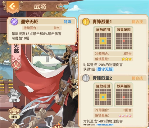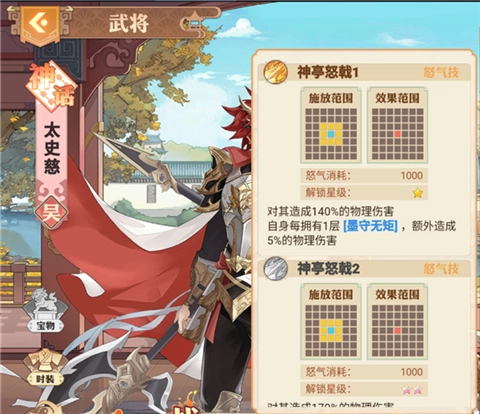 太史慈的技能专注于单体攻击,尤其擅长通过回合技和怒气技对敌人造成高额物理伤害。他的暴击和暴击伤害可以通过升星不断提高。