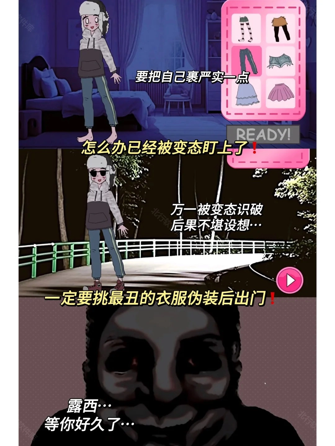 3.已经被变态盯上了,一定要挑最丑的衣服伪装后出门。