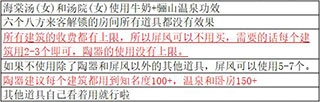 ①大温泉全功效,小温泉缺了个金色年华,楼主试了下四个温泉全功效和下面这个布局感觉没差别。