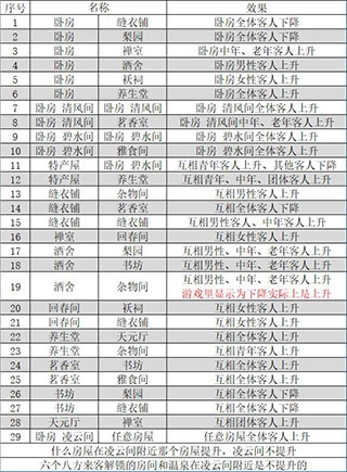 1、多种建筑任意搭配,清风间、凌云间、书斋、浴堂,建造繁华的客栈时要注意房间的属性搭配哦。
