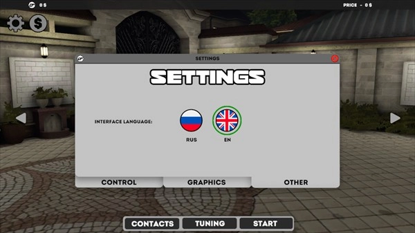 1、在本站下载并安装高加索停车场后,进入游戏选择语言时,会发现游戏目前仅提供俄语和英语两种语言选项,暂不支持中文。