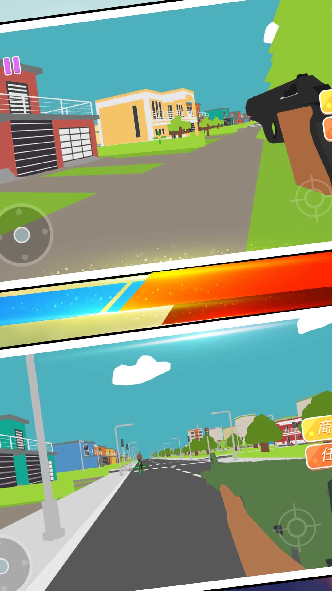 一款第一人称的射击游戏,彩玉简洁明亮的卡通风格,游戏的画面十分清新,让人感到非常的清爽。
