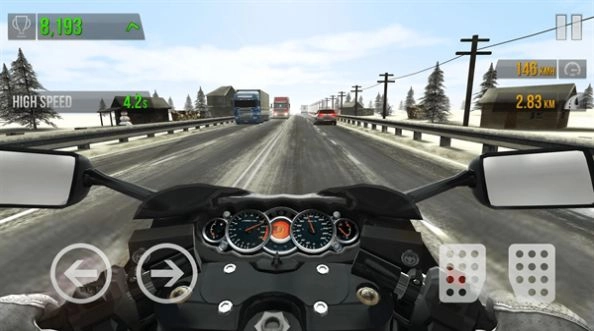 1、游戏图形精美,音效出众,给玩家带来真实的摩托车驾驶感觉,如同身临其境;