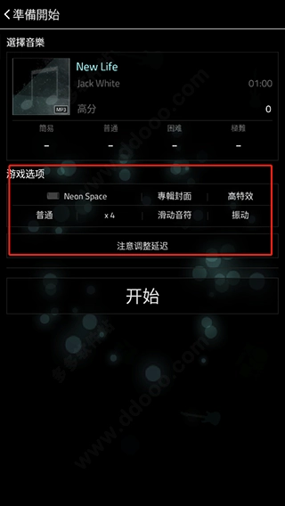 4、接着选择好歌曲后,可以设置下游戏选项,然后开始游戏