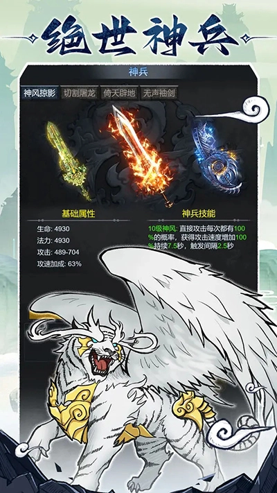 同时,玩家还可以通过完成任务或击败特定敌人来提升自己的官职,官职的提升不仅会带来额外的属性加成,还能增加特殊打怪的爆率加成,使得小怪也能爆出高级装备,给玩家带来更多的惊喜和收益。此外,玩家还可以通过升级神兵来获得更高的攻速加成和切割伤害,轻松击败高级BOSS。感兴趣的朋友欢迎来本站游玩!