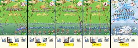 骑兵奇袭,后方突袭:骑兵绕后,直取炮车,畅通无阻是关键,弓兵辅助左侧清扫。