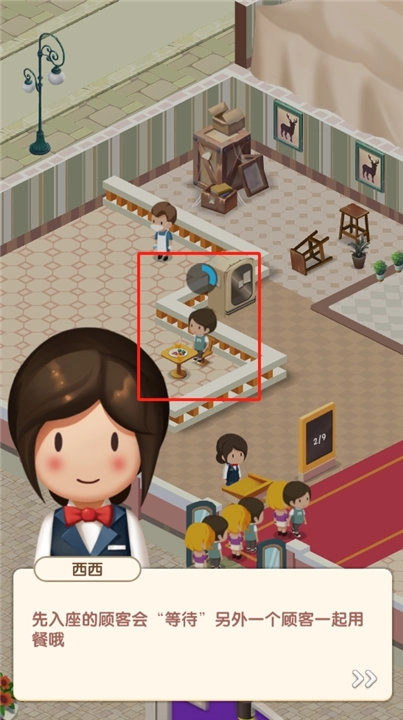 1、游戏初始阶段,玩家会接管一家餐厅,此时需点击下方的餐桌。