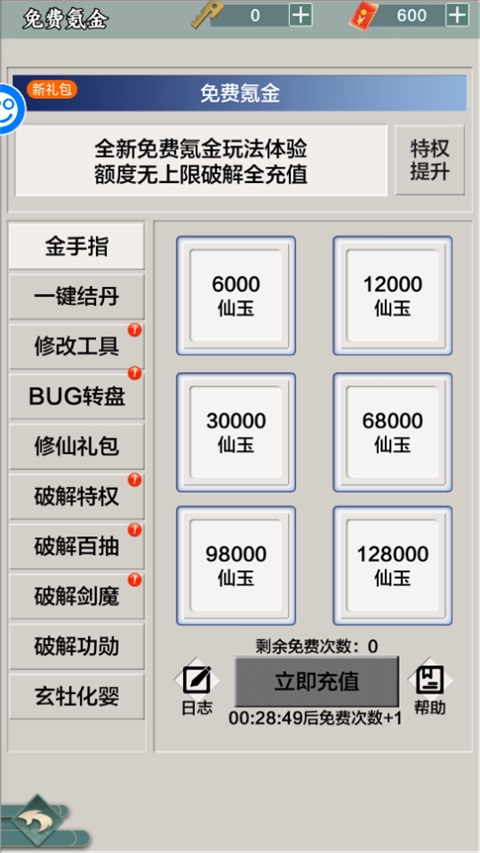 1. 上线登录即送VIP15,充值比例为1:1000。