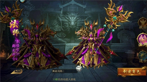 2、在职业选择中选择战士或法师,点击创建角色,或者等待系统随机选择;