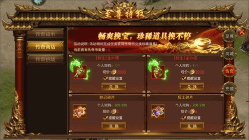6、在传奇界面当中,玩家还能在这里兑换更好的装备;