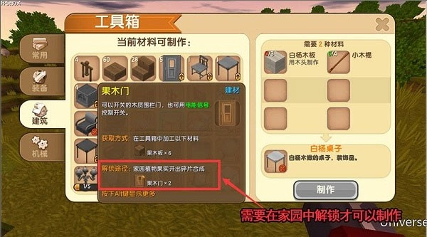 需要注意的是,在建筑类型中有些建筑图标右下角是带有一个小锁头标志的,有小锁头标志表示我们还没有解锁它,需要在家园板块中通过养殖植物收获果实解锁哦。