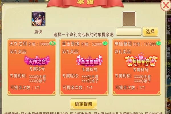 2、购买礼物后点击好友头像,再点击赠送,好友度足够后就可以到月老处对心仪对象进行求婚,月老位于天苍城广场右方,若对三生三世称号感兴趣的可以对伴侣用三种不同彩礼进行提亲