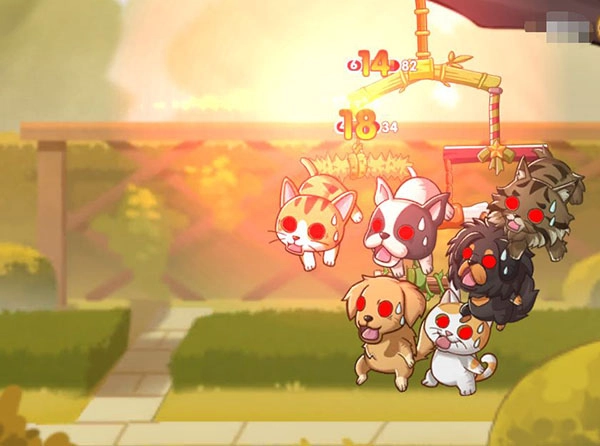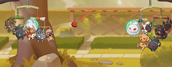开始对战后你与匹配到的一名玩家将分列屏幕两侧,在进入自身回合时,你可以自由选择点击其中一只萌宠,以简单的划动屏幕的方式操纵其弹射投掷物攻击对方。只要将对方阵容中的所有小猫小狗全部击落就算获胜,每个玩家在自身回合内仅可选择一只宠物进行弹射,且弹射完毕后就进入对手的回合。