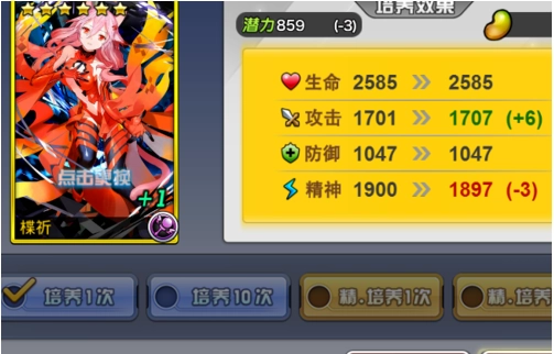 7、还有一种比较好的方法,一级一级的慢慢培养,争取每次留1点潜力点,然后用精十连培养,效果奇好,适用于壕且自己刚获得的使徒。前期可以精培,快速提升实力,抢资源,后期普培比较好,普培耗豆子。还有培养时攻防可互转,追求极限的小伙伴慎用,哇咔咔!给你们看一个玩家培养的极致爆裂使徒。