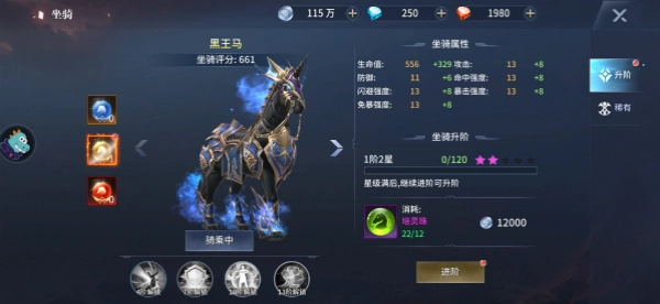 可通过升阶提升坐骑属性