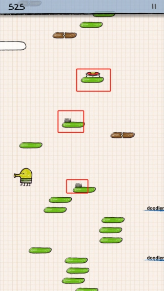 5、跳跃途中遇到有利的道具可以选择选择踩,如图示弹簧,那将会让你跳得更高