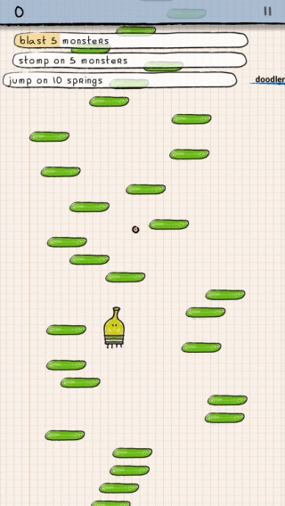 Doodle Jump又名涂鸦跳跃,堪称史上最有趣的移动游戏之一,以其别具一格的设计和极具吸引力的玩法,收获了全球玩家的青睐。在游戏里,你将在一张布满方格的纸上开启冒险。你得持续从一个平台跳到另一个平台,以此冲击更高分数,但这段冒险并非一路坦途,你要躲开那些随时可能现身的黑洞,不然就可能失去生命。