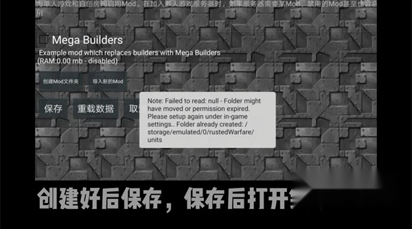 然后去菜单找到模组,创建MOD文件夹,记得给铁锈储存权限,创建好后保存。