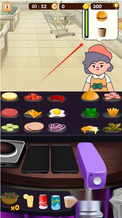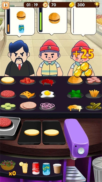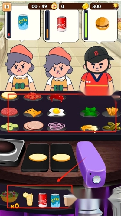 4、下方是饮料,上方是食物材料,这里可以轻松体验做汉堡的乐趣