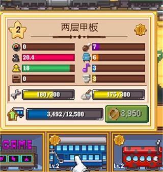 8、招到工程师后,车厢会有一个经验值,满了可以升级,会加强自带的属性(乘客加人数,食物加食物,货厢加货数)。可以升两次。