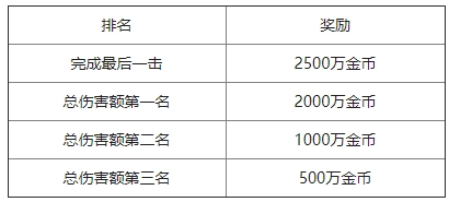 世界BOSS身上携带着惊人的财富,只要前往征伐,就可以获得大量的金币奖励!伤害总额前3名以及完成最后一击的神选者将能获得令人惊羡的海量金币。