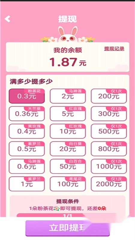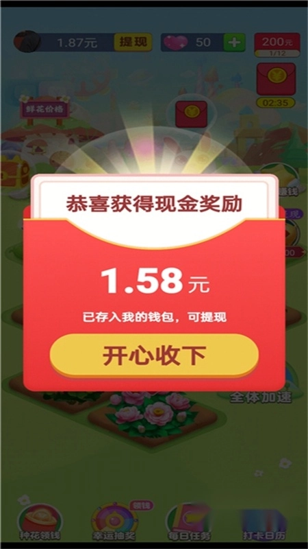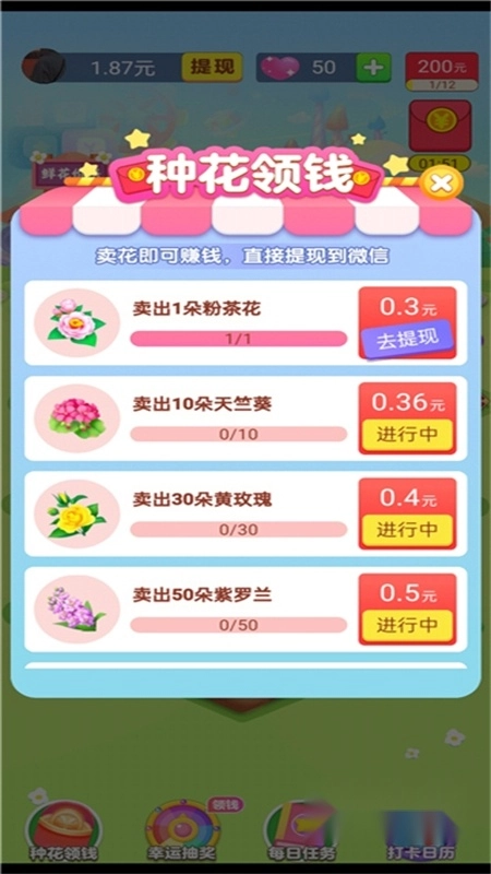 5、当种植的花卉卖出到一定数量也可获得红包,红包满足一定金额即可提现到微信零钱哦。