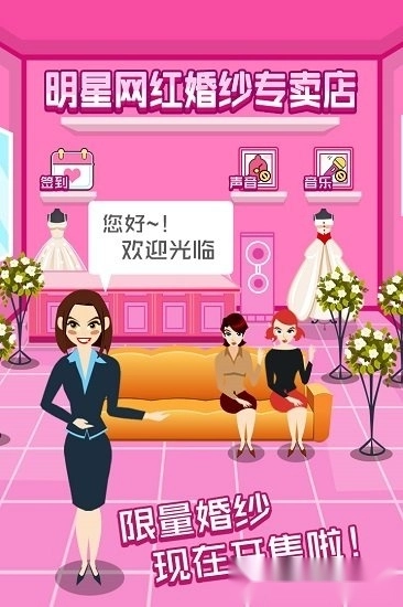 明星网红婚纱店简直是能满足你所有幻想的梦幻之地!我们会精心为各位小公主设计造型,帮她们挑选最适合的漂亮婚纱礼服裙。快来和我们一起担任婚纱店店长,热情招待每一位进店的漂亮女孩吧!这是一款超级可爱的模拟经营游戏,你可以学着做一名敬业的婚纱店服务员,用心满足每位顾客的需求,还能和她们一起欣赏店里的最新款婚纱呢!