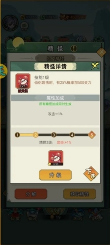 4:兽灵吞噬升星还会获得属性的提升,吞噬达到25星满星;兽灵满星以后可继续吞噬,直到所有技能满级。