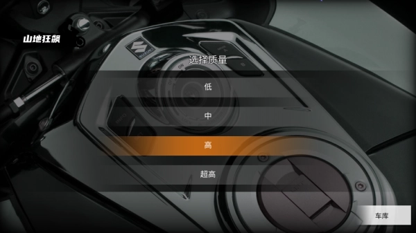 1、进入游戏,根据手机配置选择画质,点击车库进入车库