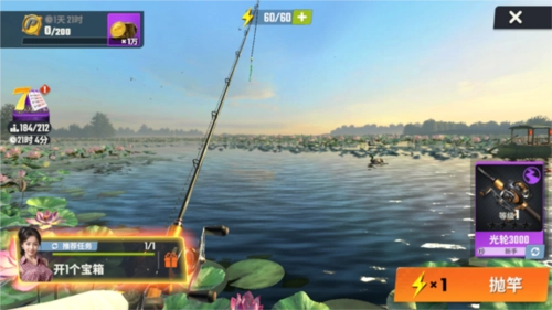 2、消耗10点体力后,点击屏幕抛出鱼竿就可以完成甩杆了。
