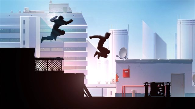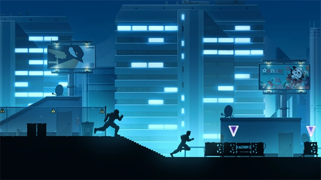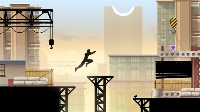 6、游戏将人物弱化成黑色的影子,让你的注意力集中在跑酷上面;