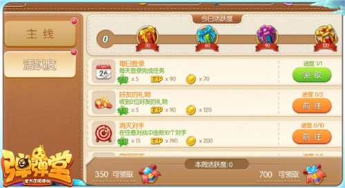 3. 每日任务:每日任务是中经验最为丰富的一类任务,包括:道具使用、社交、养成等众多内容。每个任务的经验不等,完成之后更有活跃奖励可以领取。