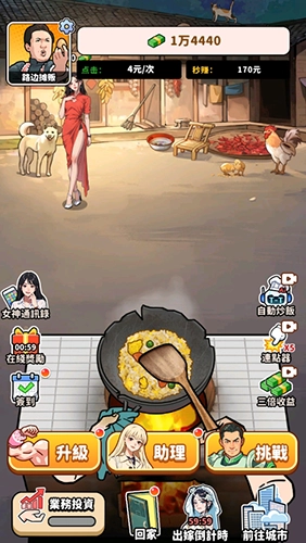 通过不断地烹饪和销售美味的美食,你将不断精进厨艺,扩大生产规模,招募助手,让你的厨房日渐繁荣。