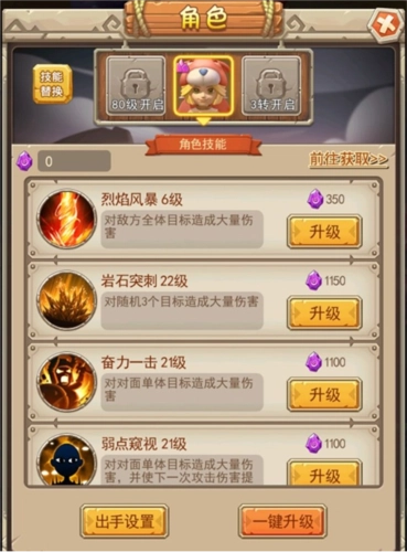 3、符文:提供额为属性加成,增加主角和伙伴战力,玩家可以通过闯关,领取通关奖励来提升符文等级。