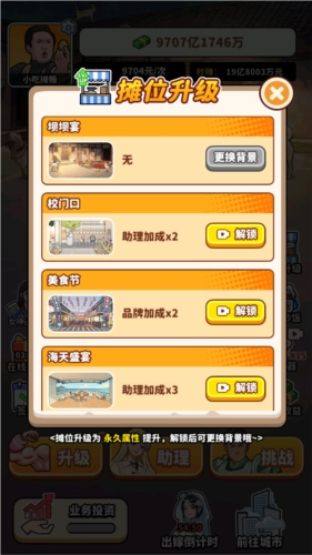 街头美食逆袭安卓版是一款在抖音上超火的趣味美食休闲模拟游戏,里面包含了不少有趣的内容,玩法也十分简单,只需持续点击操作即可。打工的日子竞争太激烈,你受够了这种让人精神疲惫的内耗生活,于是决定辞职去当街头摊贩。随着生意越来越红火,你凭借自己的努力,从普通小贩一步步成长为食神!感兴趣的玩家可以去体验街头美食逆袭最新版。