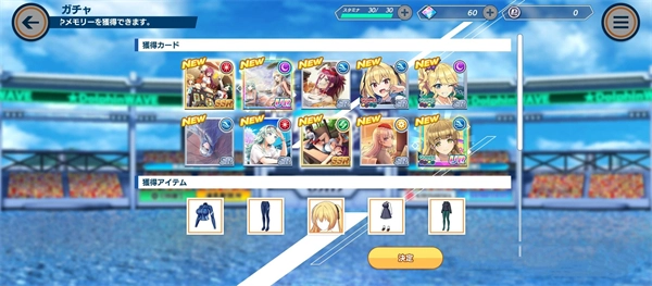 游戏里抽到角色之后还会一同赠送角色的服装,在专门的换衣间就可以为喜欢的角色选择不同的服饰了。