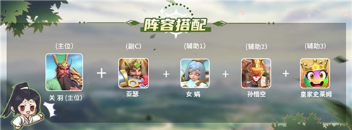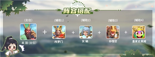 阵容一:关羽、亚瑟、女娲、孙悟空、皇家史莱姆