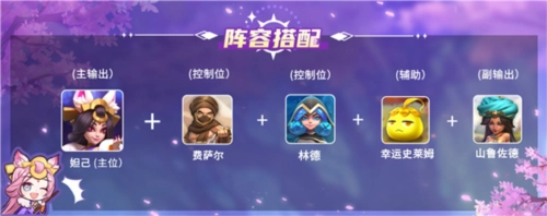 阵容一:费萨尔、林德、妲己、幸运史莱姆、山鲁左德