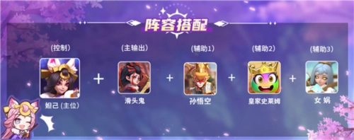 阵容二:妲己、滑头鬼、孙悟空、皇家史莱姆、女娲