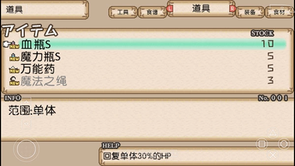 1、启动不可思议之国的冒险酒场汉化版,进入游戏界面后,点击△按钮即可打开游戏菜单。